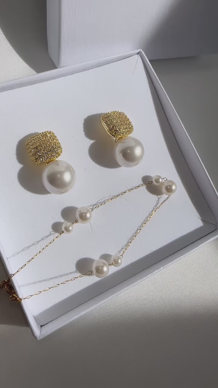 Hanna Daisy - Gold Pearl Bracelet Earring Gift Set
