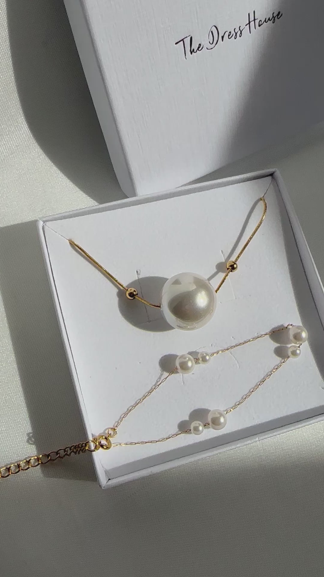 Jill Daisy - Pearl Gold Necklace Bracelet Set