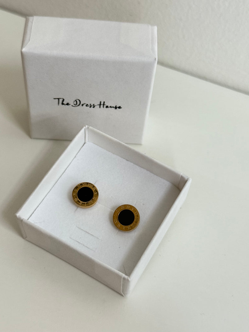 Black Gold Roman Numeral Stud Earring Bracelet Gift Box
