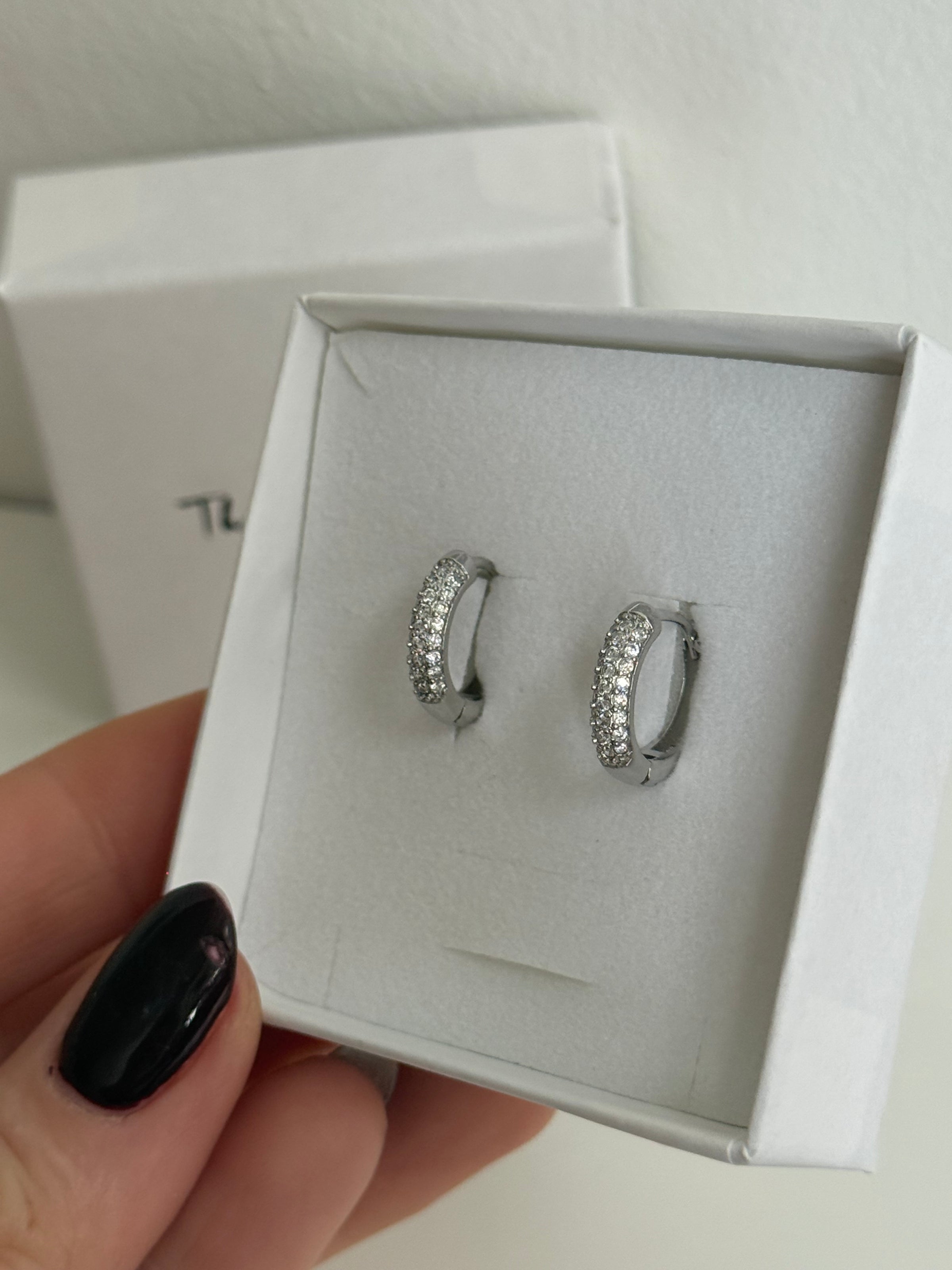 Elevate your everyday look with these elegant silver sparkle hoops. Designed with a polished silver finish and encrusted with shimmering stones, they catch the light beautifully for a subtle yet eye-catching glow.