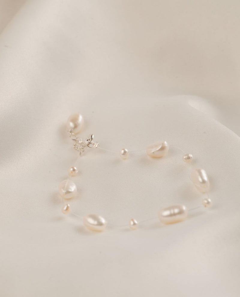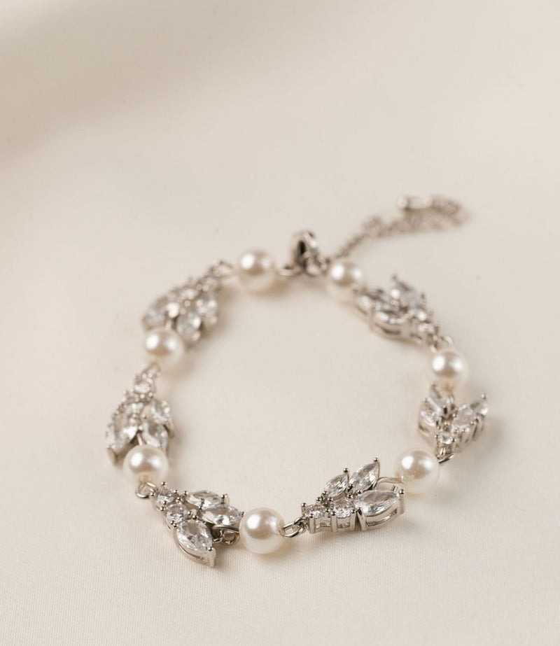 Cora - Bridal Silver Pearl Earring Bracelet Set