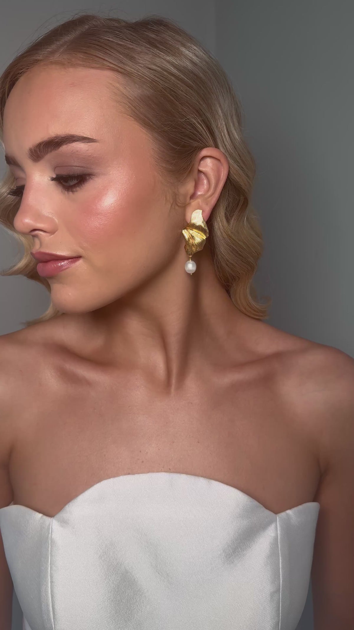 Exuding timeless elegance, these earrings feature a lustrous baroque-style pearl suspended from textured gold metal. Each pearl’s unique shape adds character and charm, while the warm gold setting enhances its natural glow. Perfect for elevating everyday looks or adding sophistication to special occasions.