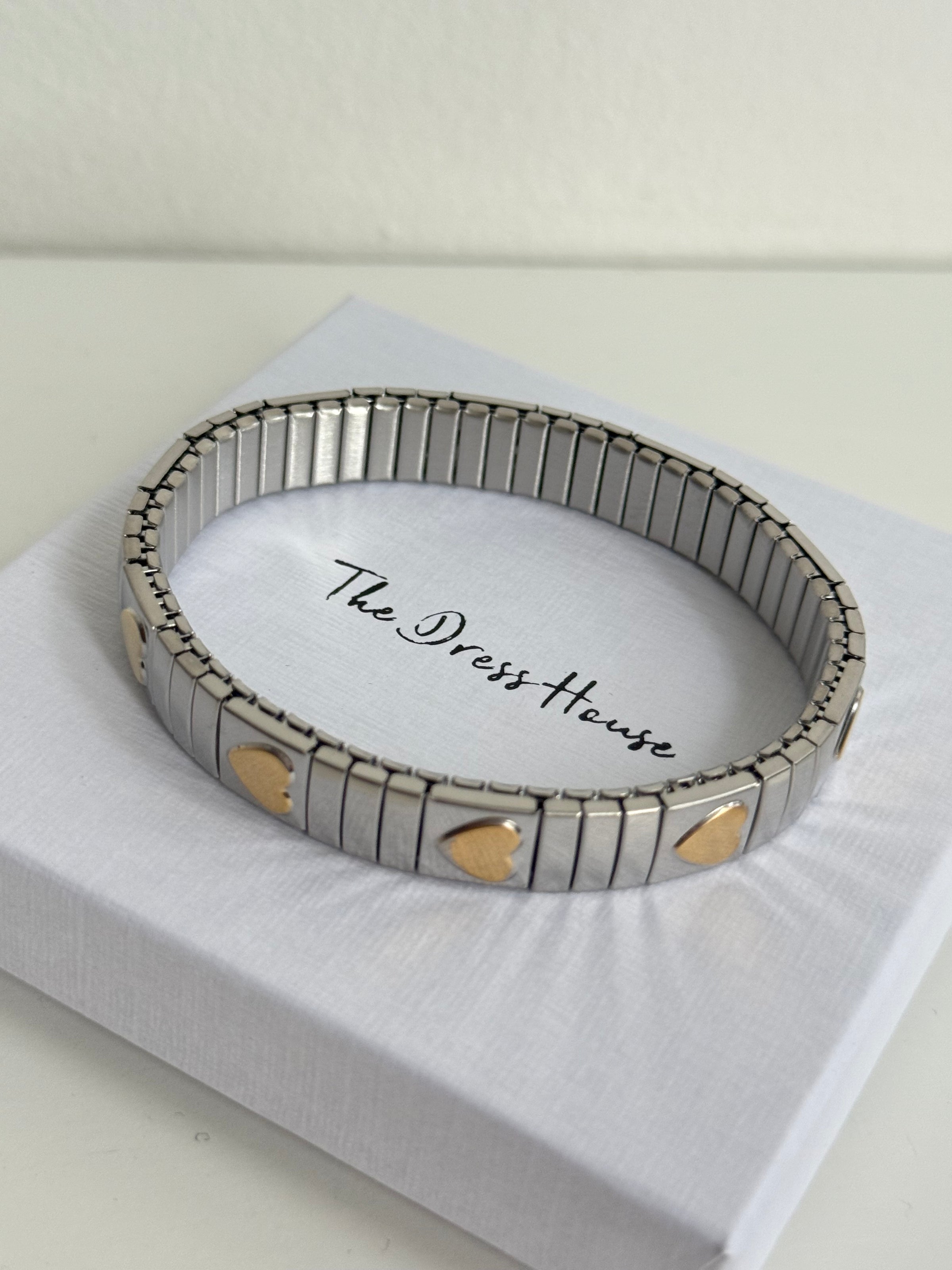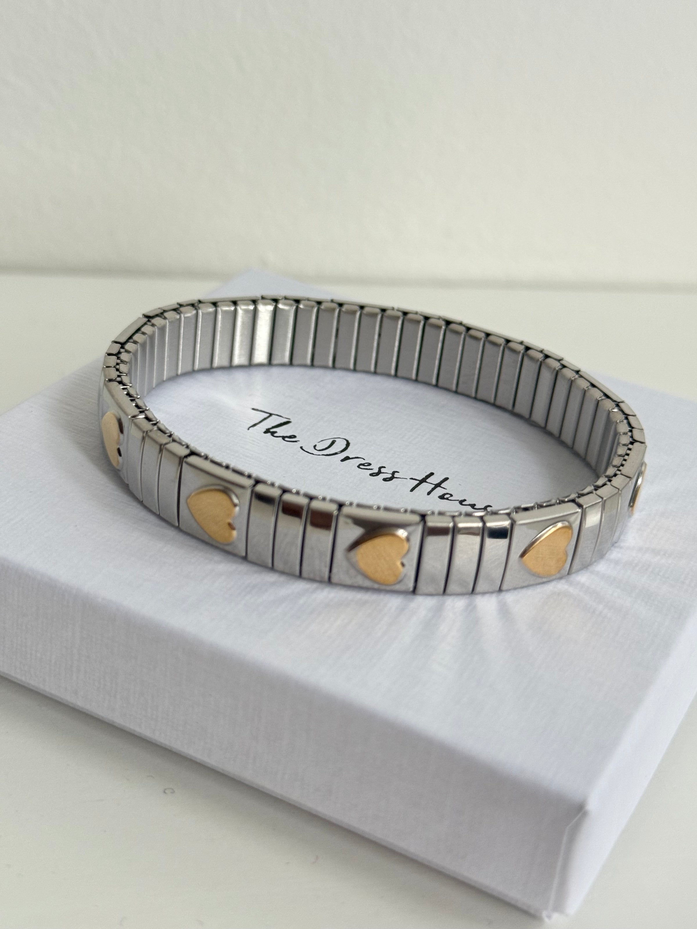 Roxie - Two Tone Heart Gold Silver Bangle Bracelet