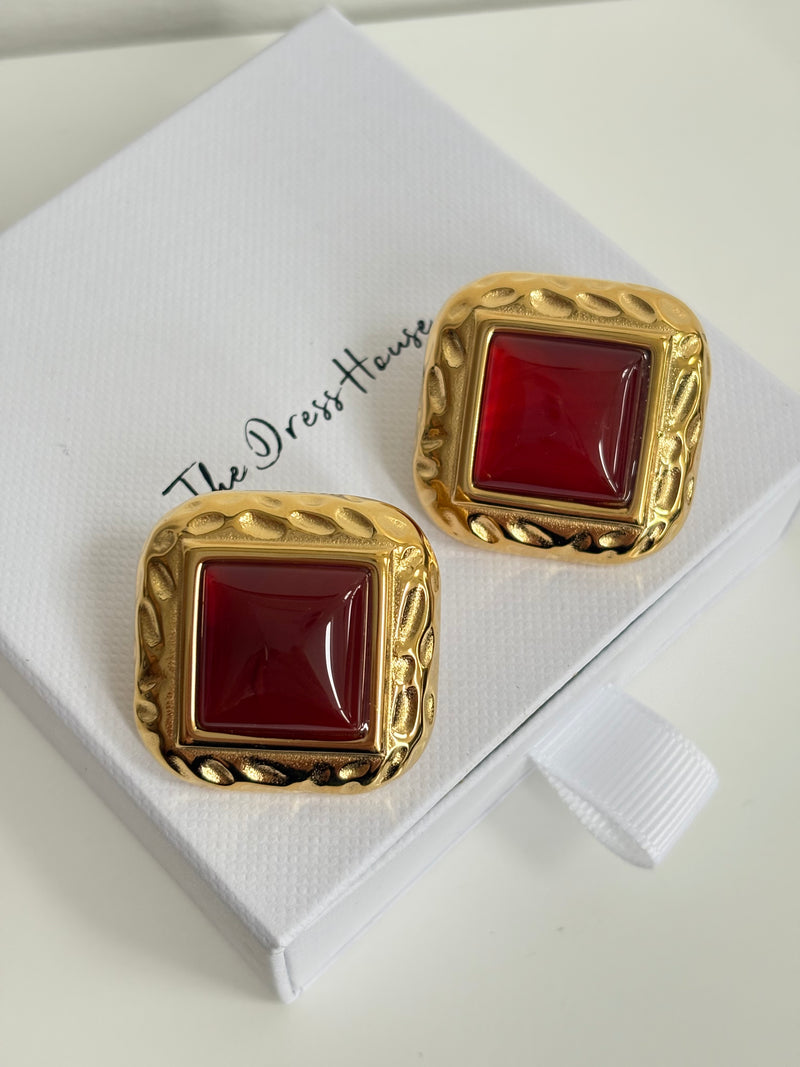Cally - Gold Red Statement Earring