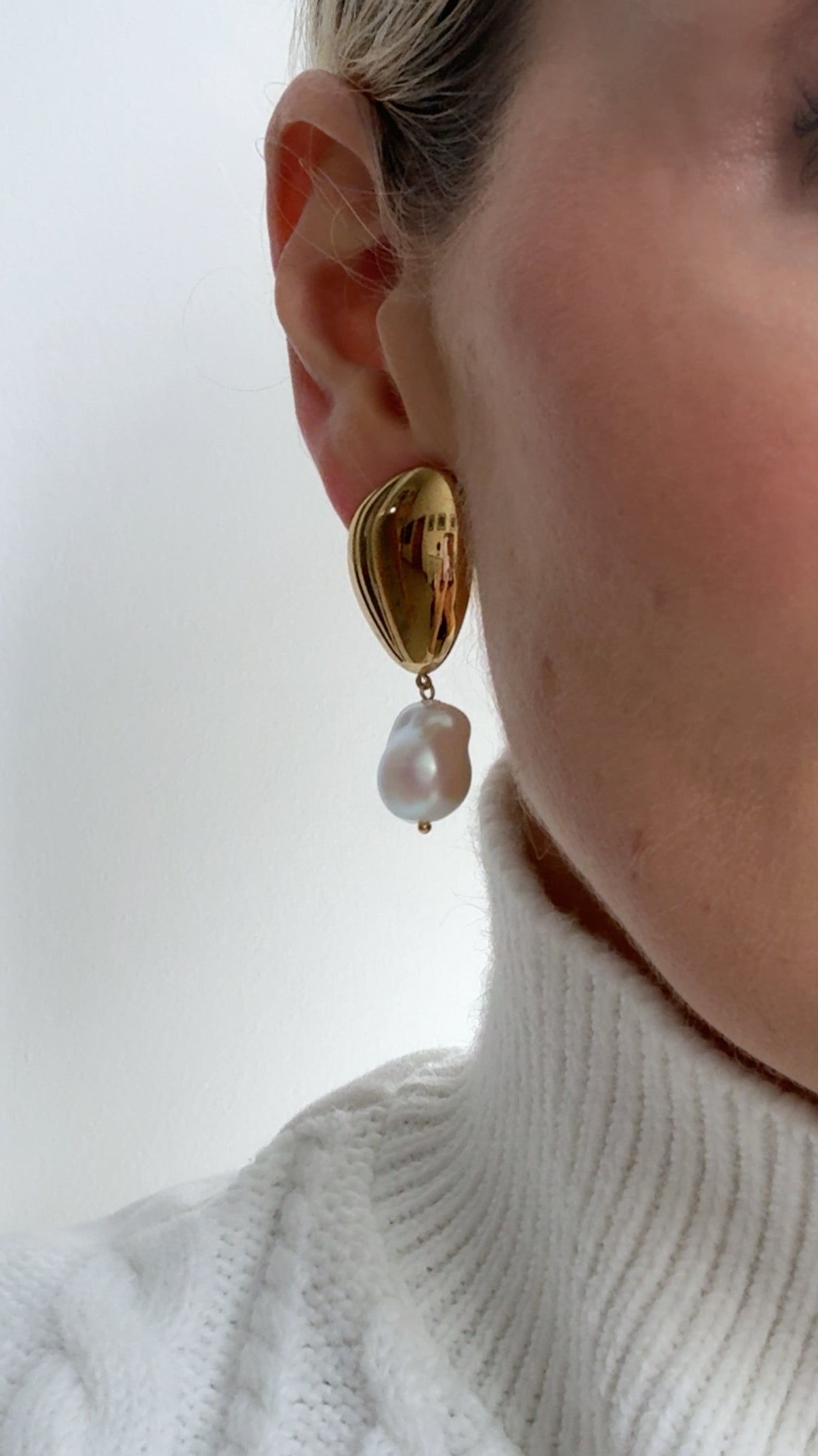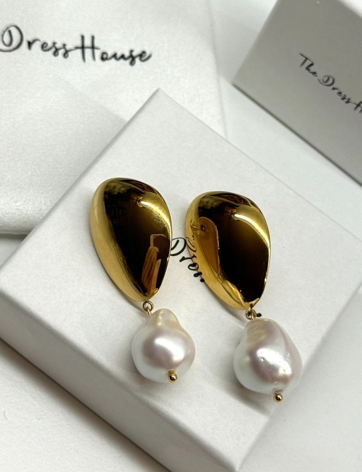 Elegant and timeless, these Statement Gold & Pearl Drop Earrings are designed to make an impact while remaining beautifully refined. Featuring a lustrous pearl suspended from a polished gold setting, they offer the perfect balance of classic bridal style and modern sophistication.